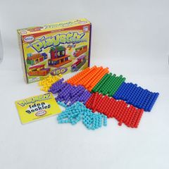 木製の犬の形をしたおもちゃ、柔らかい耳が特徴。
