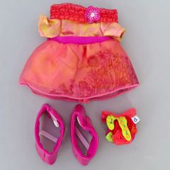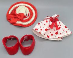 ミニーマウスの2013年ハロウィン衣装を着たぬいぐるみ、赤色の装飾付きドレスが特徴。