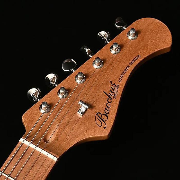 上位機種「 TACTICS 」のスペックを受け継ぐ「 TAC24 」のスタンダードバージョン ■ ポップでモダンなルックスが一際目立つ New スタンダードモデルが登場! 上位機種「 TACTICS 」から仕様を受け継いだ TAC24 モデルに、ポップなルックスのスタンダードモデルが新登場。 24 フレット仕様にはじまり、二点支持トレモロとロック式ペグを備えた、モダン・スタイルに忠実な機種です。テクニカルなプレイの入門用としてはもちろん、これからギターを始める方にとってもピッタリなプレイアビリティを兼ね備えたハイコストパフォーマンスモデル。 ■ 幅広い表現を可能とする 24 フレット仕様 24 フレット仕様を採用したことで、音域が広がるため、演奏性も広がります。ハイポジションを使用したメロディや、スウィープでローからハイまで縦横無尽に一掃するプレイングなどに適しております。 テクニカル系ギタリストの方はもちろん、最近よく耳にするネオソウル系のギタリストの方にも是非演奏して欲しい仕様です。 ■ ローステッドメイプルネック採用 ネックには Bacchus の新機軸でもあるローステッドメイプルを採用。ローストする工程上でゆがみが生じてしまうような木材はその時点で淘汰されるため、ネックとして搭載されている個体は非常にゆがみやねじれに強く、比較的手に取りやすい価格帯ながら長い間ご愛用できる仕様となっております。 ■HH 配列のピックアップ&コイルタップ 2 ハムバッカー仕様となっており、パワフルなサウンドが魅力的です。 24 フレット、 2 スタッドトレモロ等の仕様と相まってモダンな印象に仕上がっています。ハードなリードからテクニカルなソロプレイまで演奏をサポートします。 コイルタップスイッチで切り替えることで、シングルコイルさながらの歯切れのよいサウンドを鳴らすことも可能となります。これにより、音作りの幅が広がり、まさにジャンルレスに活躍する 1 本となりました。 ■ ハイフレットの演奏性を高めるヒールレスカット ハイフレットの演奏性をサポートする為、ジョイント部分にはヒールカットが施されております。ヒールカットの形状も良く、ハイフレットを演奏する際に手にフィットし違和感を感じさせない仕上がりになっております。 ■2 点支持トレモロユニット&ロック式ペグ搭載 Bacchus Universe Series では、初採用となる 2 点支持トレモロユニット搭載しております。左右の 2 点のスタッドを支点にすることでアーミング時に発生する可動部の抵抗がはるかに少なくなり、滑らかなアーミングとより安定したチューニングを実現しました。 さらに、ペグ裏のホイールを回すとストリングポスト内のポールが上昇し、弦を挟み込んで固定する機構の「ロック式ペグ( Locking Tuner )」を搭載。弦交換を容易にするだけでなく、チューニングの安定性を向上させる効果もあります。こちらも Bacchus Universe Series 初の採用です。 ※ 掲載画像はサンプルです。材質の特性上、木目や色合いは一本毎に異なります。予めご了承下さい。 Body : Hardwood Neck : Roasted Maple Fingerboard : Roasted Maple Nut : ABS Bridge : 2 points Tremolo Machineheads : Locking tuner Fret : Nickel Silver Pickups : Original H-H set Controls : 1Vol,1Tone,3Way PU Selector SW,Coil Tap SW Scale : 648mm(25.5inch) Width at Nut : 42.0mm Fingerboard Radius : 400R Finish : Polyurethane or Polyester Accessories :ソフトケース、レンチ、保証書 ※ 細部の仕様とデザインは予告なく変更になる場合がございます。全て新品。ケーブル・消耗品以外メーカー 1 年保証書付のでご安心してお買いもの頂けます。