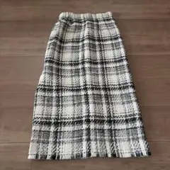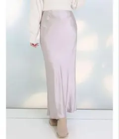 デニム素材のハイウエストロングスカート、骨盤あたりから広がるシルエットでスタイルアップ効果あり。