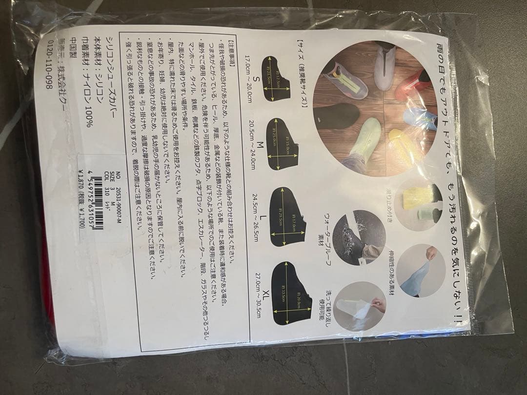 ファスナー付き シリコン シューズ カバー Mサイズ
