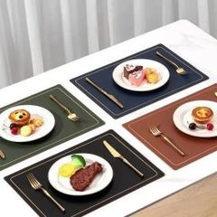 装飾的なカットアウトデザインのホワイトとボルドーのランチョンマットセット。