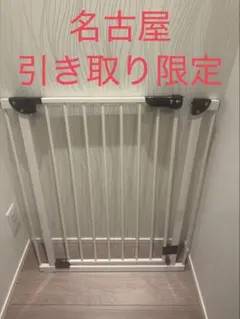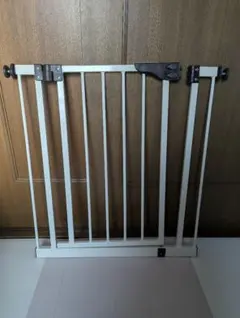 ブラウンとホワイトの折りたたみ式ベビーゲート、調整可能なサイズで安全を確保。