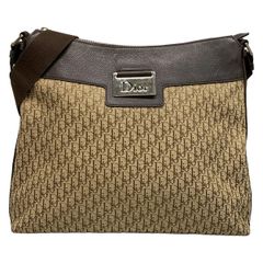 Christian Dior クリスチャンディオール 肩掛け レザー キャンバス ブラック レディース シルバー金具 ハーフムーン