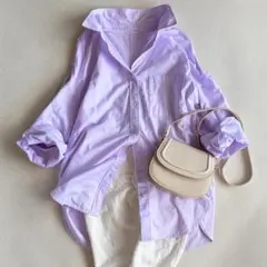 カジュアルな印象のオーバーサイズシャツをカラーと素材感で大人っぽく仕上げました。