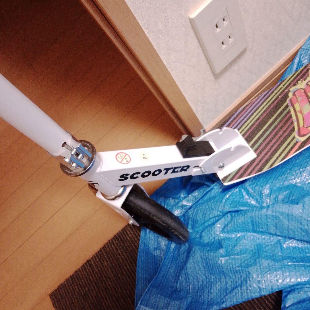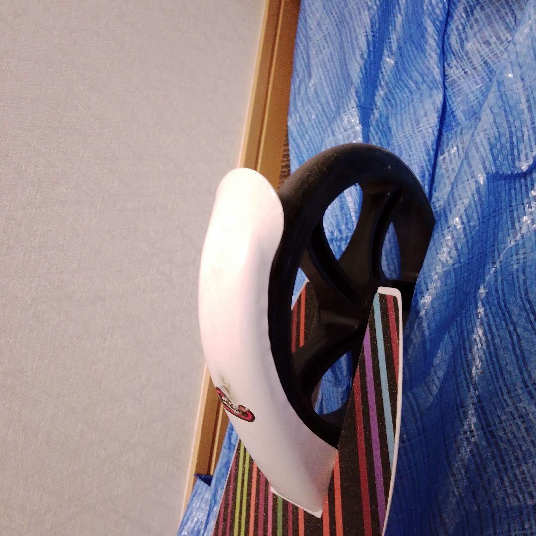 ストライプとラブのデザインが特徴のホワイトキックボード。