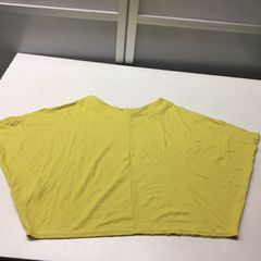 リブ編みのストライプデザインにチュールの袖が特徴的な半袖トップス。