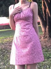 フード付きのピンクベージュミニワンピース、ジッパーデザイン