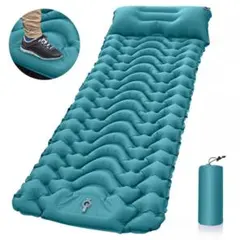 195*70*10cmのキャンプマットは地面の凹凸や硬い岩から守り、革新的な凹凸設計と枕付きで背中と首の圧力を軽減し、快適な睡眠を提供します。