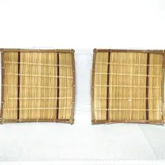 竹製の四角いざる、中央に格子模様のデザインが特徴。