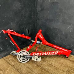 レッドとパープルのグラデーションが美しいマウンテンバイクフレーム。