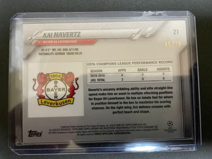 2020 topps カイ・ハヴェルツ ベースカード 75シリ