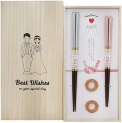 木製のダークブラウンの箸とストライプ模様の収納袋がセットになっています。