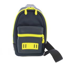 コンパクトなレザー製ボディバッグ、調整可能なストラップ付き。