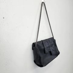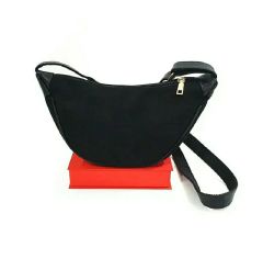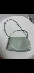 オリーブ色のナイロン製ショルダーバッグ、シンプルで使いやすいデザイン。