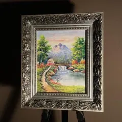 柔らかな紫色のバラが印象的な油彩画、厚塗り技法で花びらの質感が際立つ。