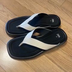 ZARA ザラ ベルトバックルレザースライドサンダル 41