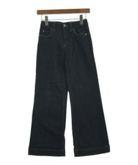 ライトブルーのワイドレッグデニム、フリンジヘム付き。