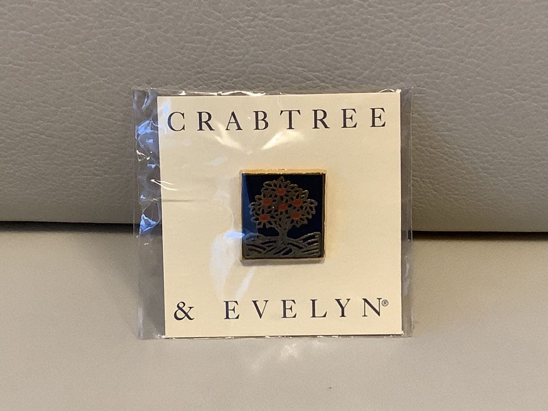 木のモチーフが特徴的なCRABTREE & EVELYNのピンバッジです。