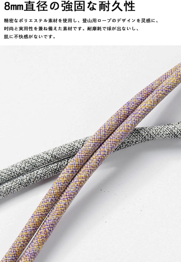 8mm直径 頑丈で耐久性のある精密ポリエステル素材を採用し、クライミングロープのデザインにインスパイアされた、ファッションと実用性を兼ね備えた製品です,摩耗に強く、毛玉ができず、肌に優しい感触です。