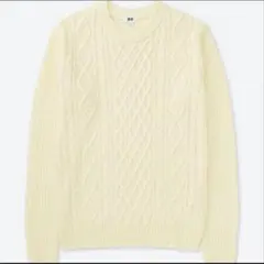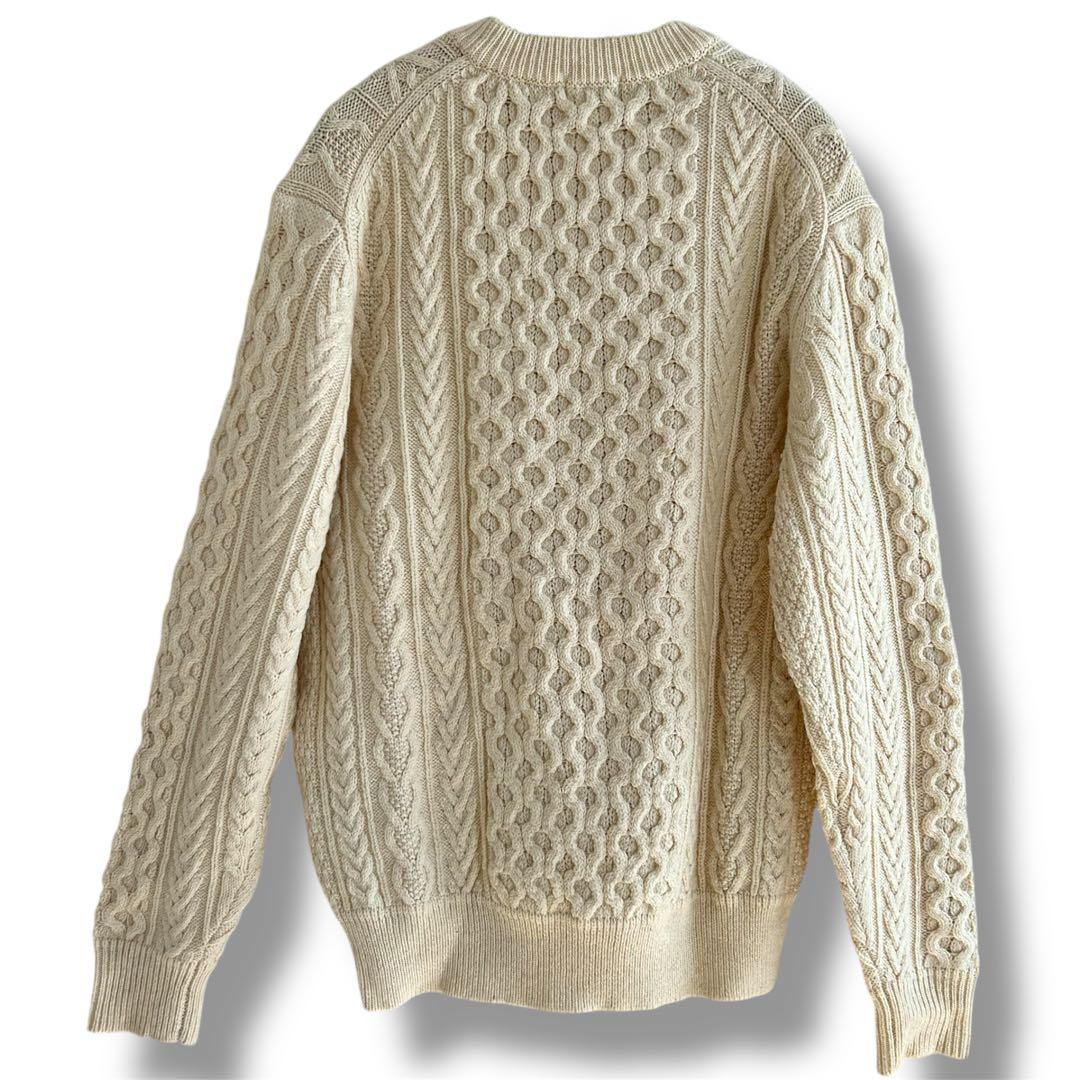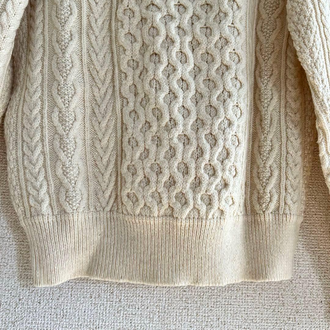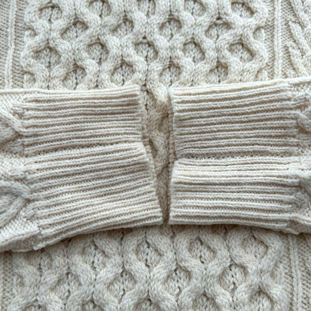メンズのケーブル編みニットですが、男女問わず着用できるデザインだと思います。