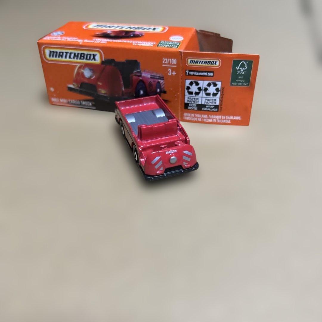 鮮やかな赤色のMATCHBOXミニカー・カーゴトラック、3歳以上向けのコレクションに最適。