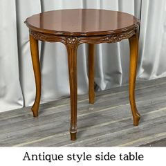 アンティークデザインのラウンドミニテーブルです。天板には大理石、脚部には装飾が施された真鍮(ブラス)が使用されています。アンティークショップにて4万円程で2年前に購入いたしました。