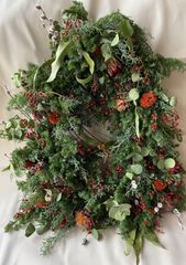 沢山のバラや小花にイミテーションラインパールやクリスタル、ダイヤで輝きを添えた、ボリュームのある豪華な特大ジュエルリースですので贈り物にもおススメです!