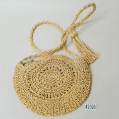 ホワイトのかごバッグ、リボン付きで可愛らしいデザイン。