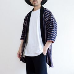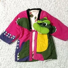 金銀糸の刺繍が施された紺色の綿入れの丈長の半纏というよりどてら、ねんねこでしょうか。