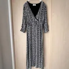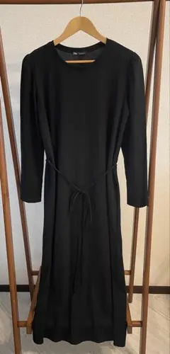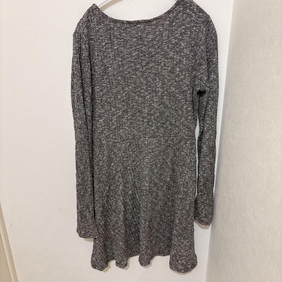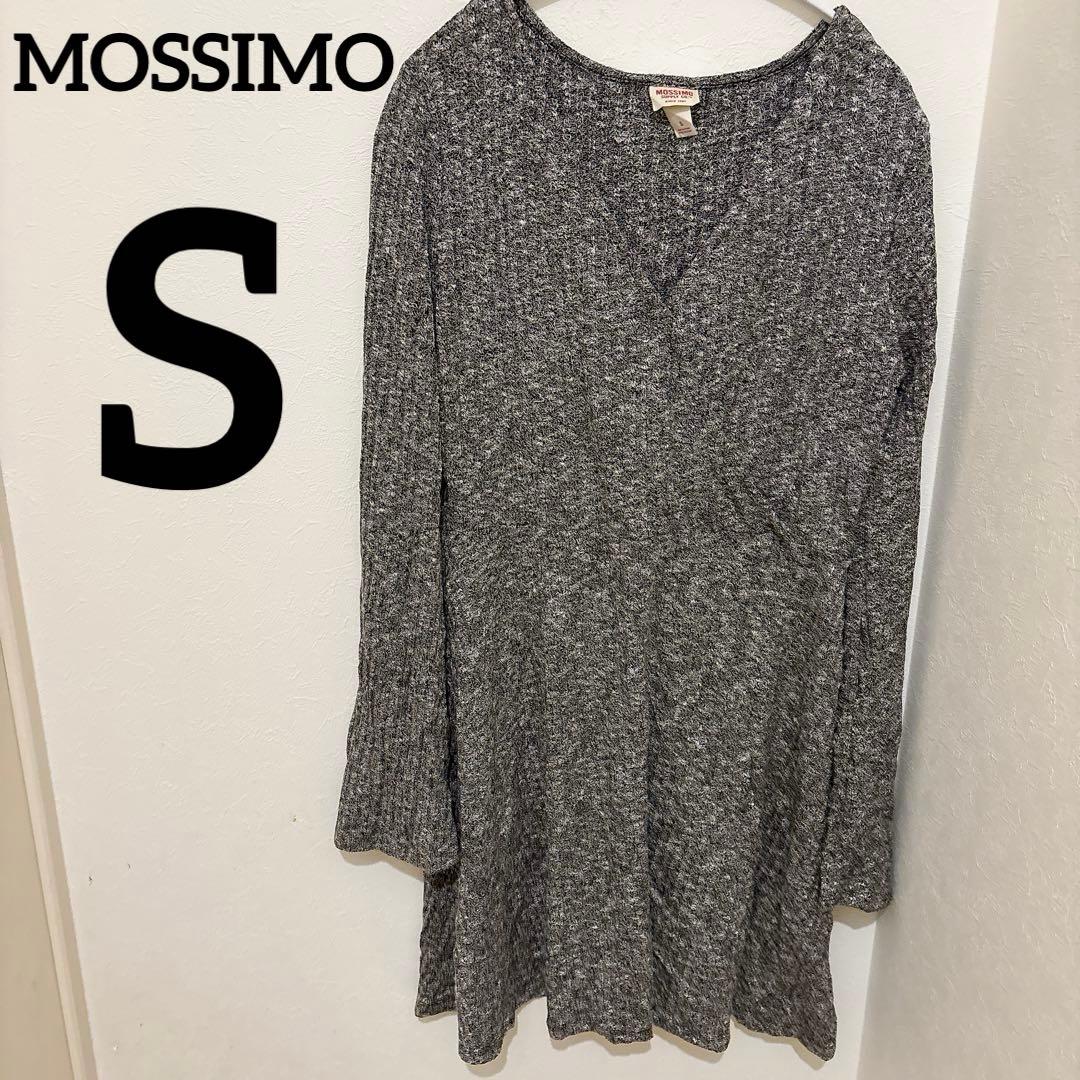 シンプル お出かけ 体型カバー 着痩せ MOSSIMO【S】長袖 ワンピース グレー クロス ひざ丈