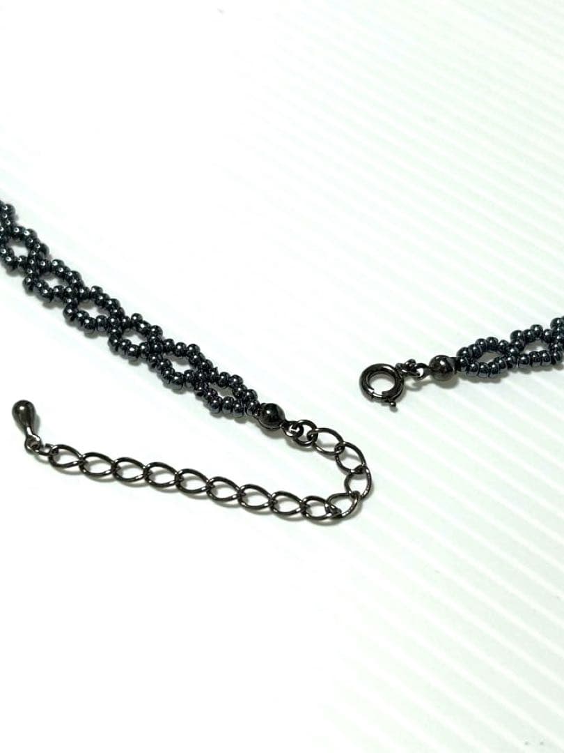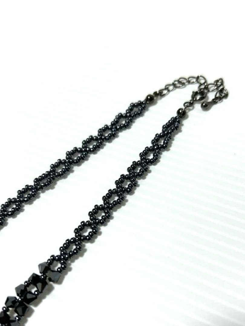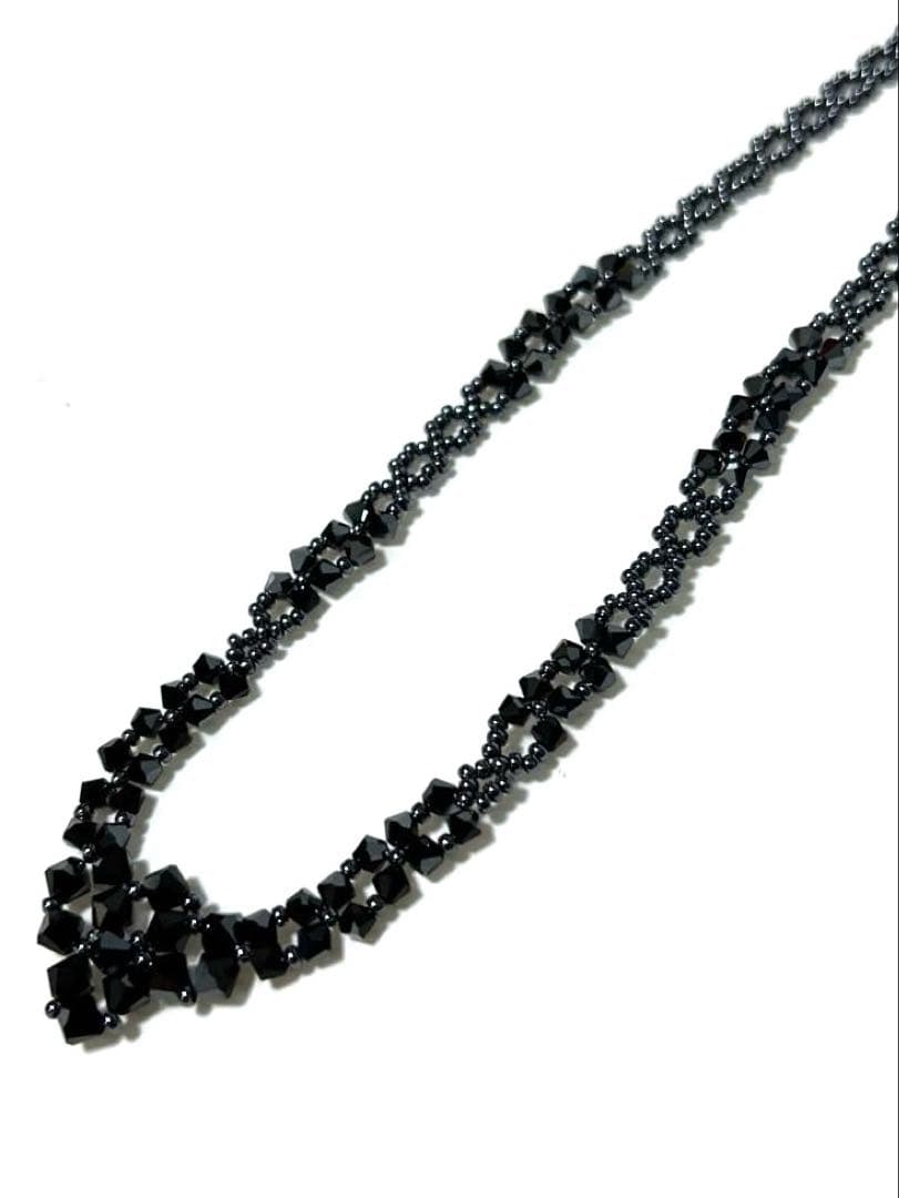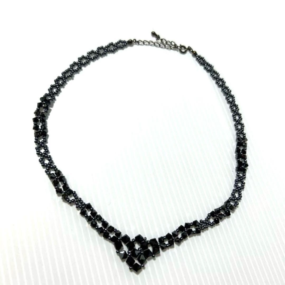 多面体ビーズを使用したエレガントなブラックネックレスです。
