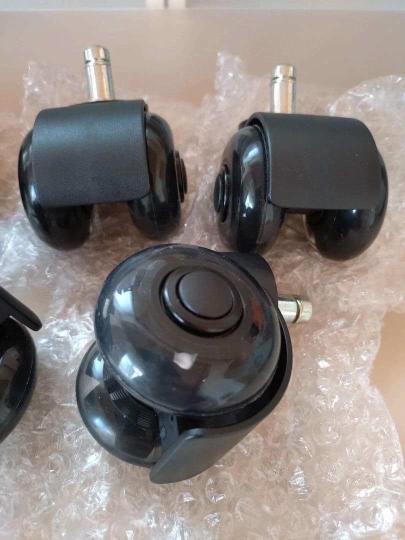 【耐荷重】オフィスチェアキャスターは最大1ポンドまで支えることができ、重い方に最適です。 2つの透明なダブルボール精密ベアリングと衝撃を吸収するポリウレタンタイヤを備えています。椅子は動いているときに音を立てて他の人の邪魔をしません。