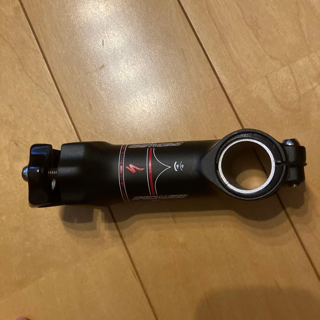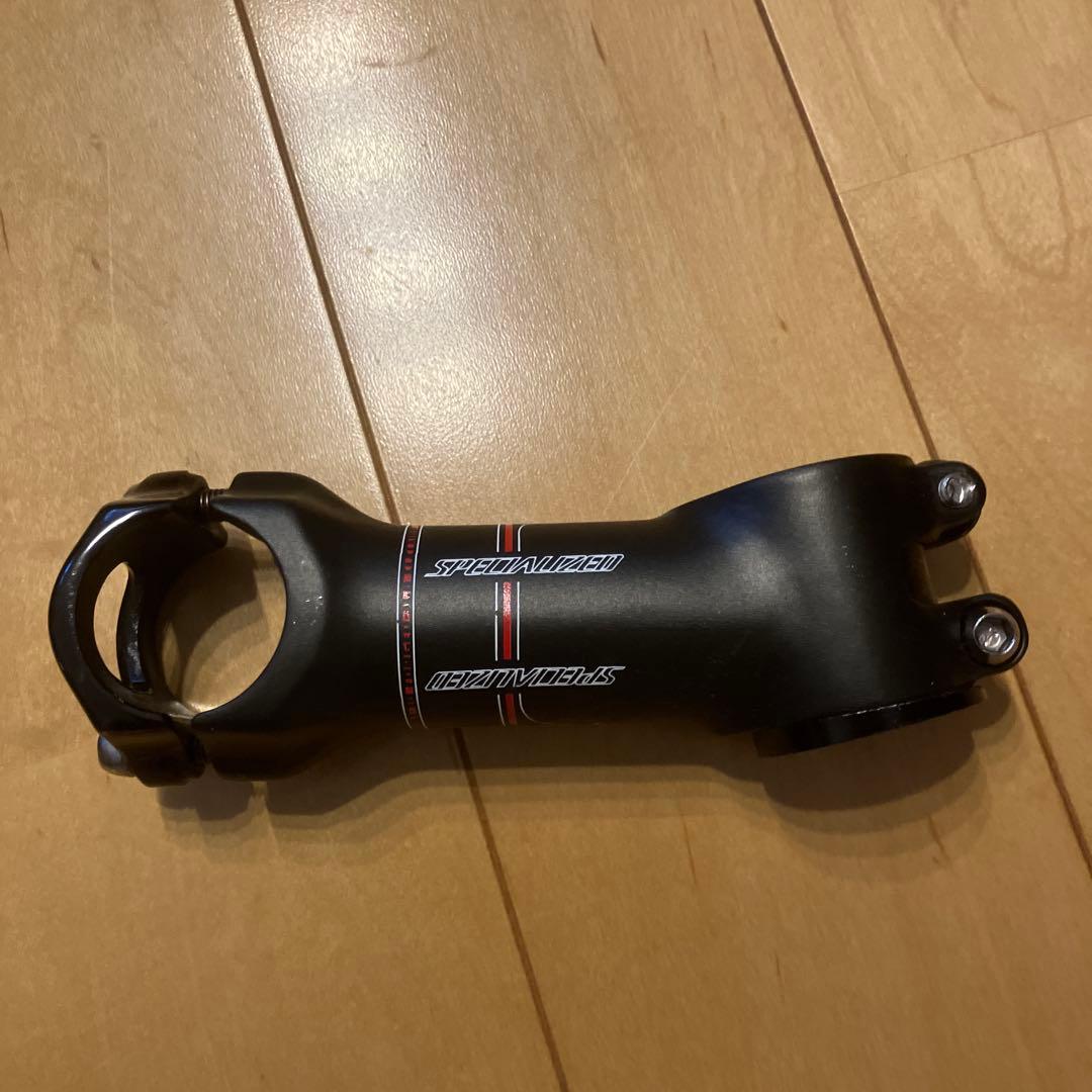 軽量アルミ製のブラックステム、31.8mmクランプ径。