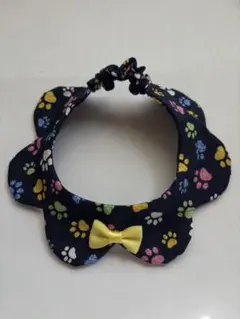 綿素材、ハンドメイドの猫ちゃんのシュシュタイプの首輪です。
