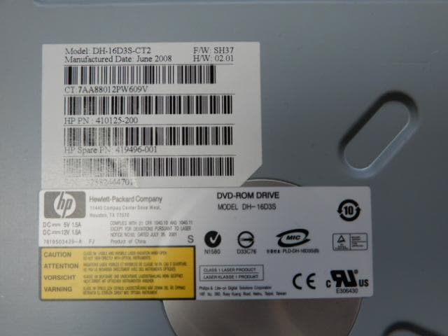 ・ hp製バルク内蔵型DVD-ROMドライブDH-16D3S-CT2-ブラックです