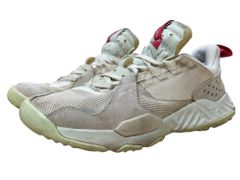 ホワイトとブラックのレザー製ローカットスニーカー。