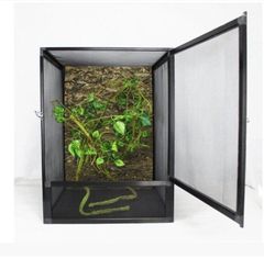2つのライトと温度計を備えた爬虫類用飼育ケース。