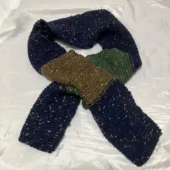 タイトル : カラフル 編み込み フリンジマフラー ハンドメイド 暖色系