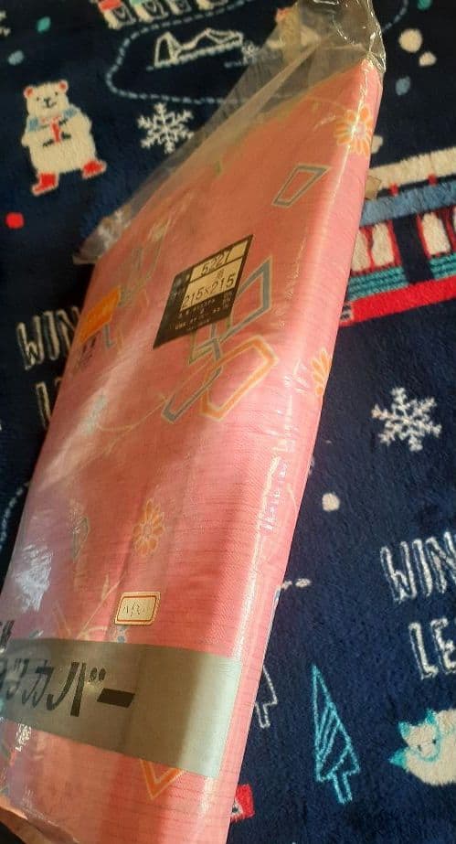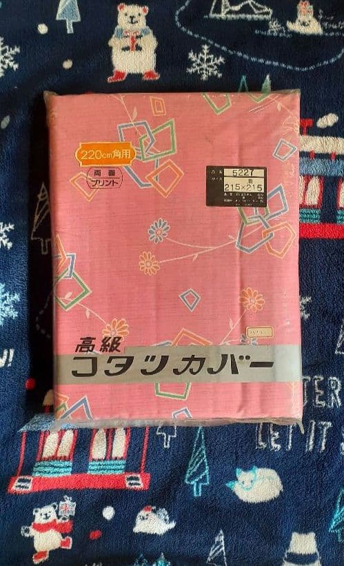 ピンクお花モチーフ柄 こたつカバー 215x215cm 昭和レトロポップ