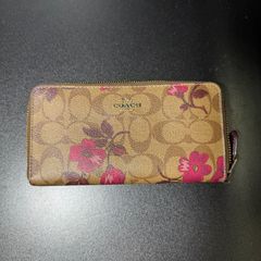 花柄デザインのCOACH長財布、内部はジッパー付きポケットと多数のカードスロットを備えています。