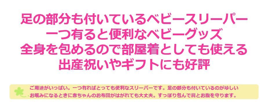 また、この商品は足の部分が付いているお洋服タイプのスリーパーです。
