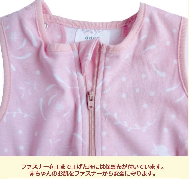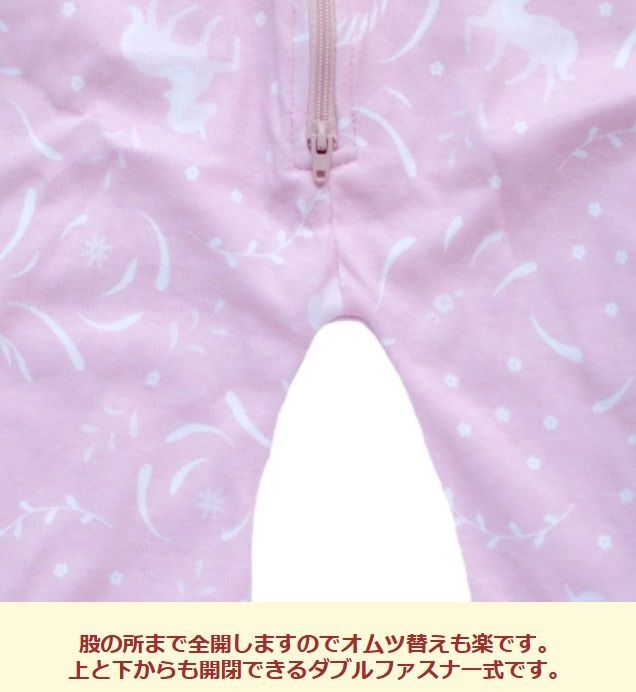 上下より開閉できるダブルファスナー式。上の首の部分にはファスナー保護布付きなので赤ちゃんは安心安全。