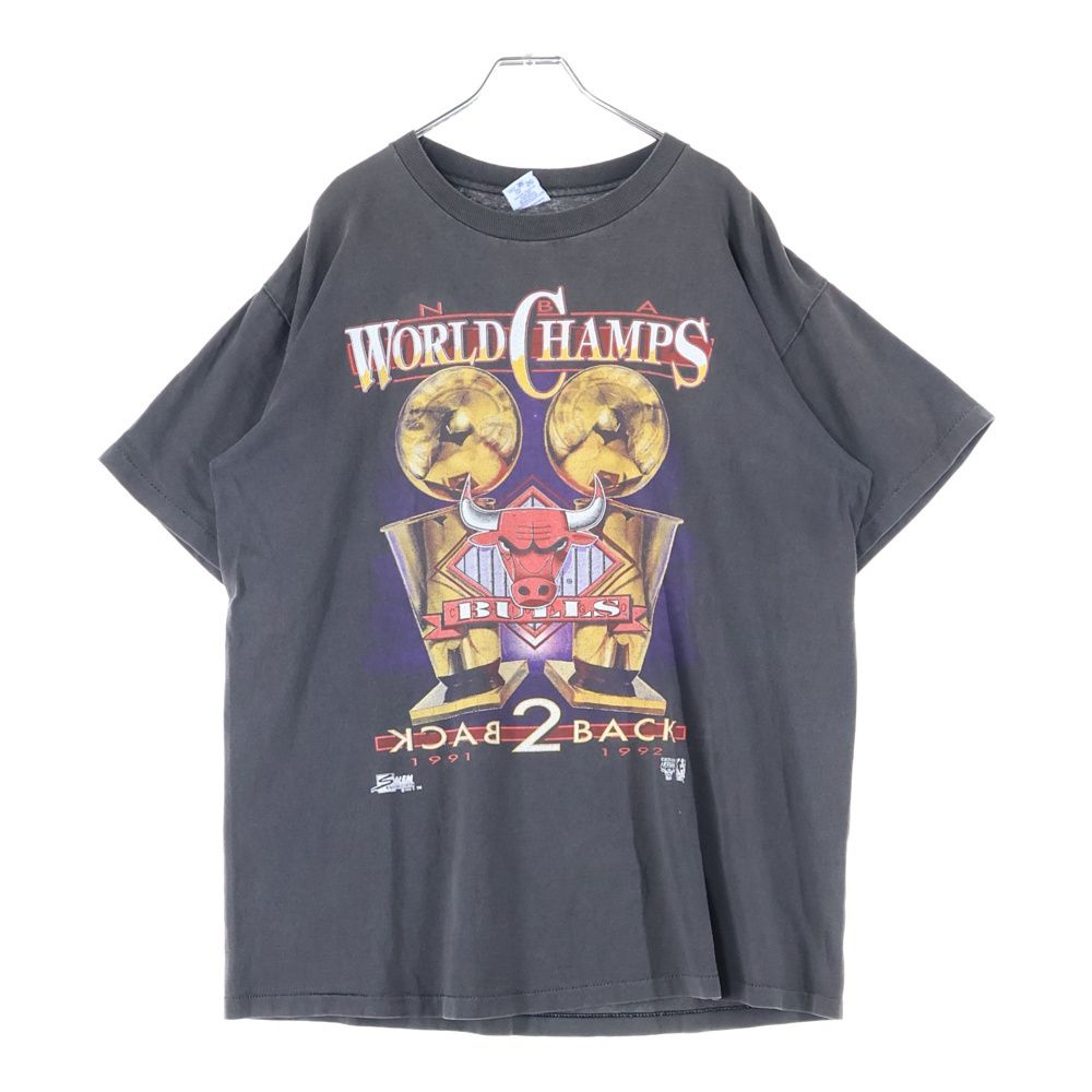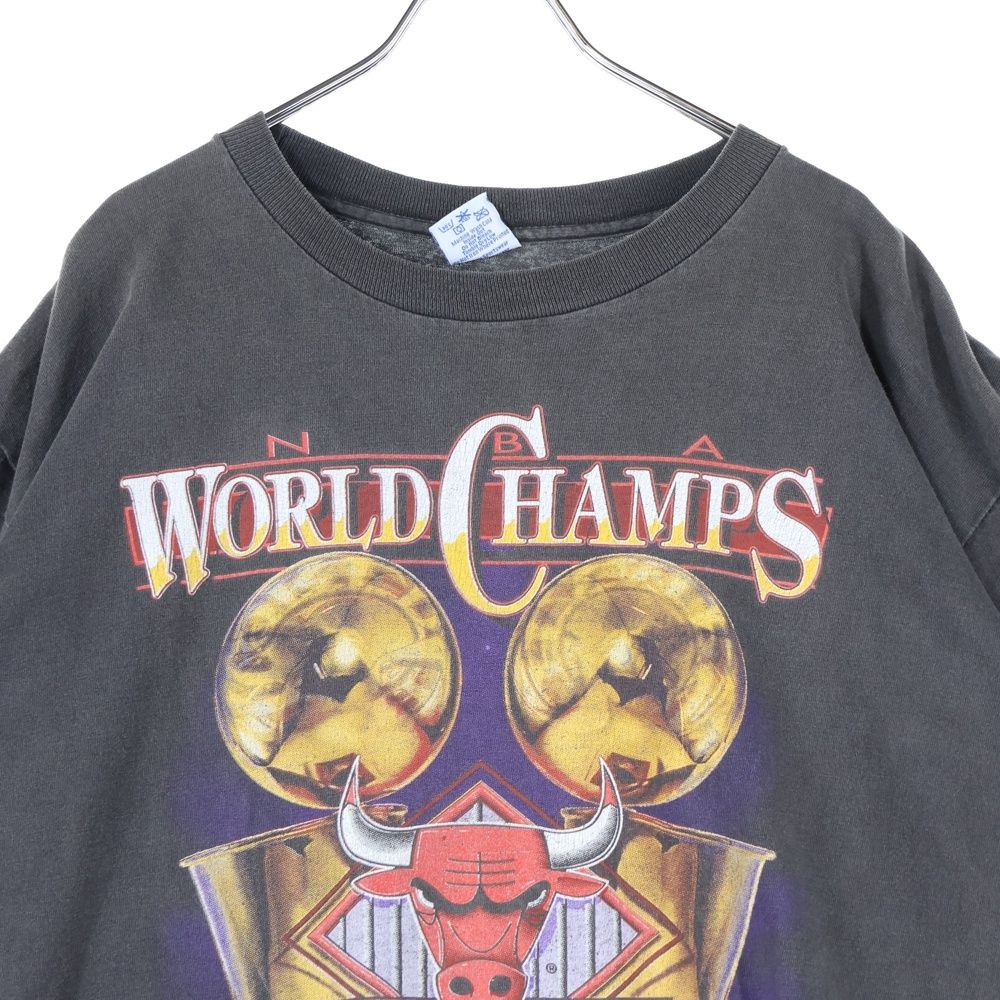 【品名】90s BACK 2 BACK WORLD CHAMPS CHICAGO BULLS シカゴブルズ プリント 半袖Tシャツ カットソー ブラック