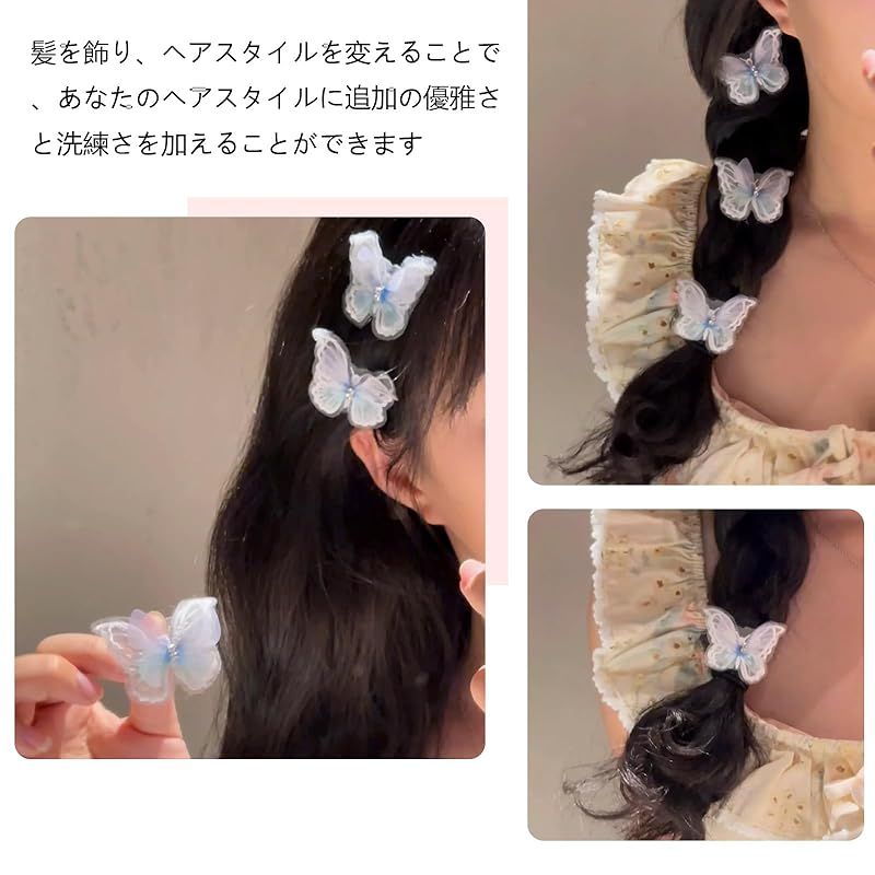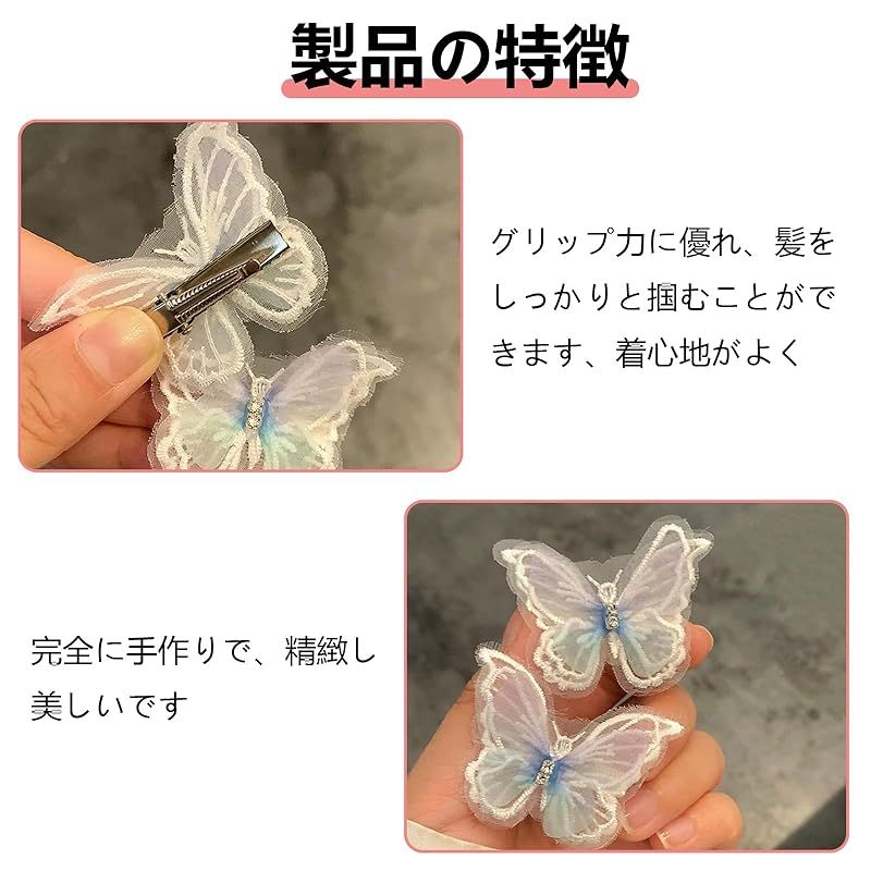 【使いやすい】完全に手作りで、精緻し美しいです。それに、握りやすく、髪をしっかりと握ることができる優れたグリップ。れらの綺麗な蝶 ヘアクリップはあなたの日常生活の中で身につけられます。子供も大人も使える可愛いヘアピンです。