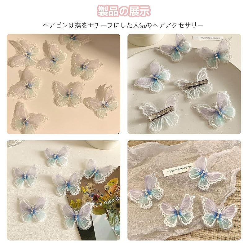 商品名:YANHUILAY 蝶 ヘアクリップ ヘアピン【6本セット】レース 蝶 可愛い 閃光を放つ 髪飾り 髪留め おしゃれ 人気 ヘアアクセサリー パーティー 発表会 誕生日 結婚式 レディース