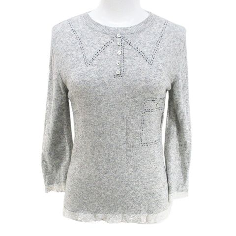 【商品名】ジルデュフール Gilles Dufour 長袖 ニット セーター カシミヤ 絹 シルク混 40 灰系 グレー イタリア製 ステッチ 刺繍 毛 ウール