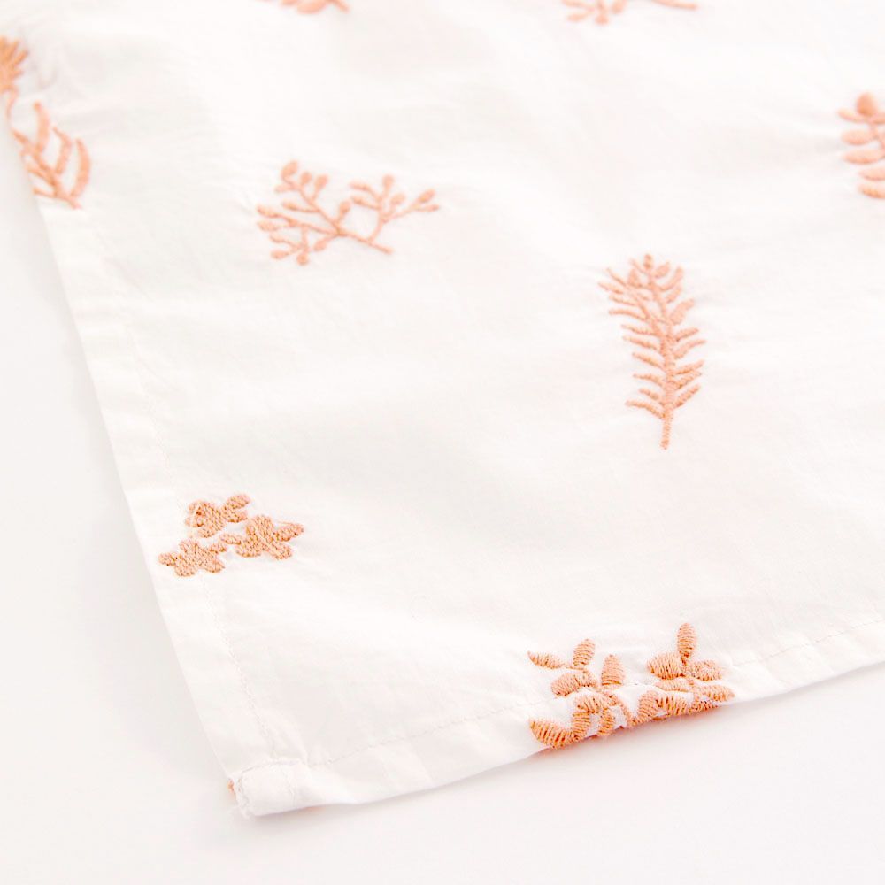 5種類の花やリーフの刺繍が、まるで庭にいるようなリラックス感を味わえるひと品です。