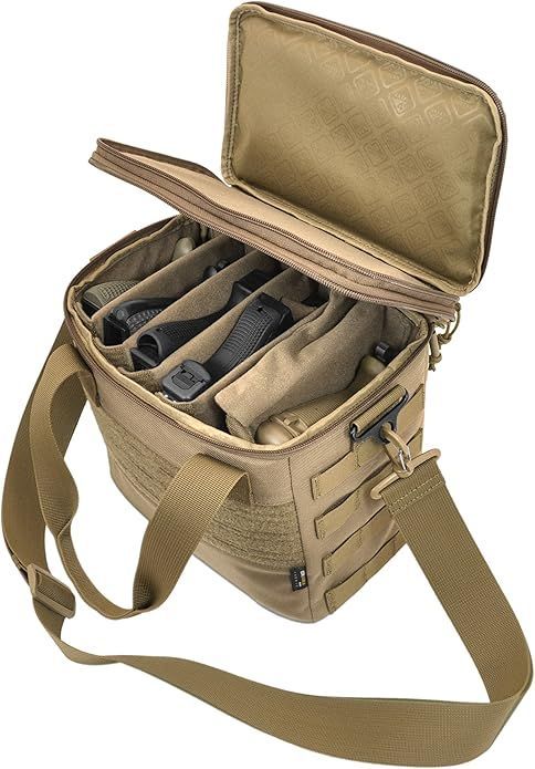 6~14 CCW (グリップ/バレルの長さによって異なります) を一度に運べます。 複数のCCWボックスとロックを持ち出す問題を解決します。 コレクターやトレーナーが複数のCCWを範囲に持ち込むのに最適なソリューションです。ハードドライブ、レンズ、冷たい飲み物などの他のアイテムを持ち運ぶのにも最適です。 Hazard 4(R)独自のデザインアイデア - 非常にコンパクトなショルダー/トートバッグパッケージ、360パッド保護機能、5つの可動補強/パッド入りディバイダー、ロック可能なジッパー、雑誌などのサイドモールアドオンエリア。