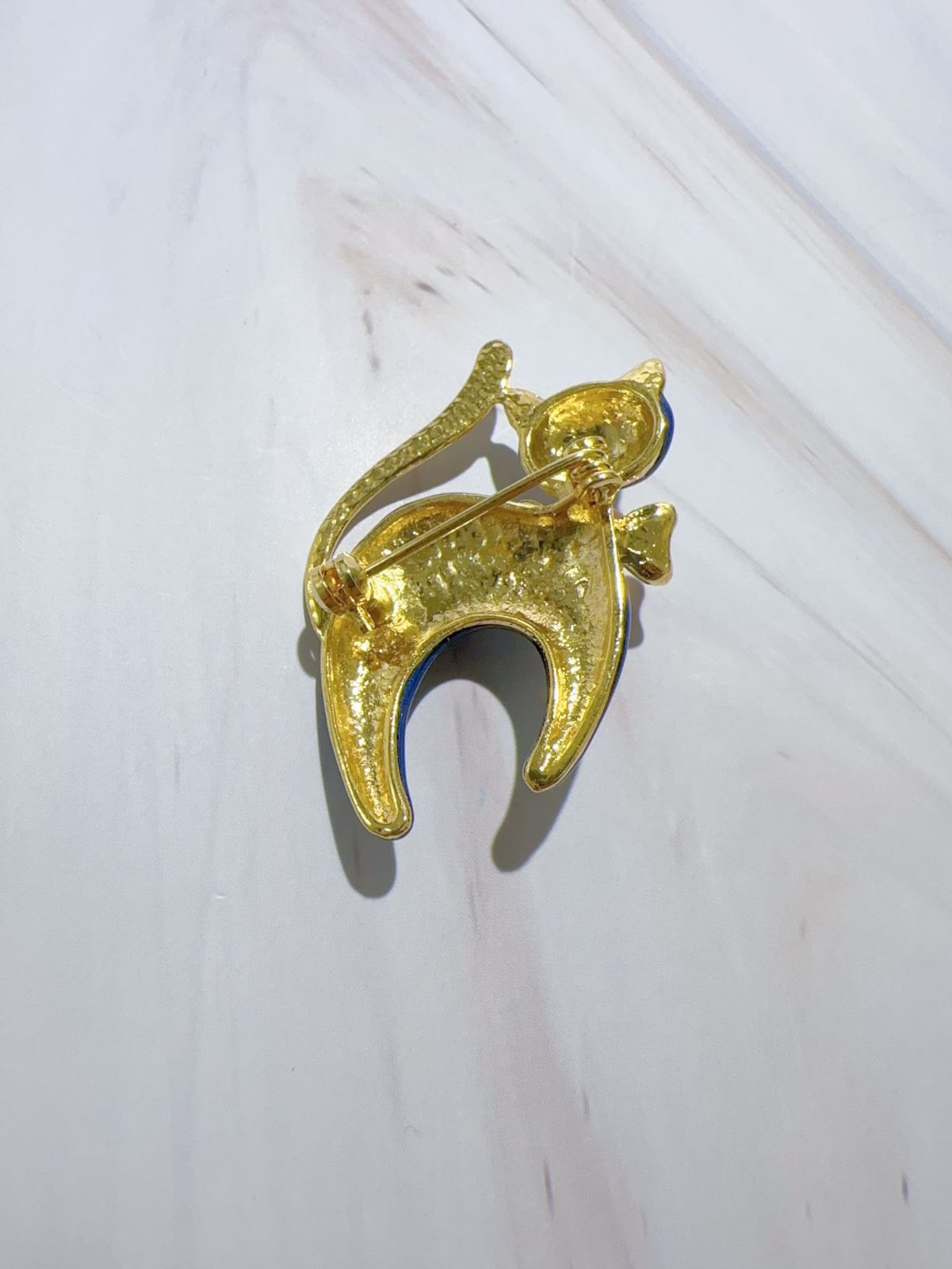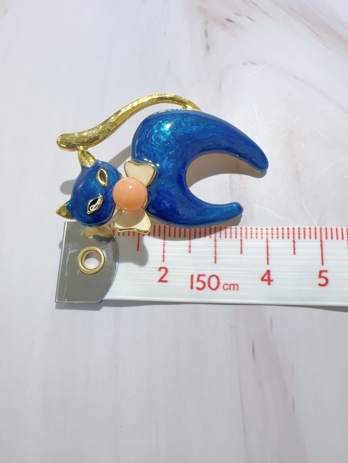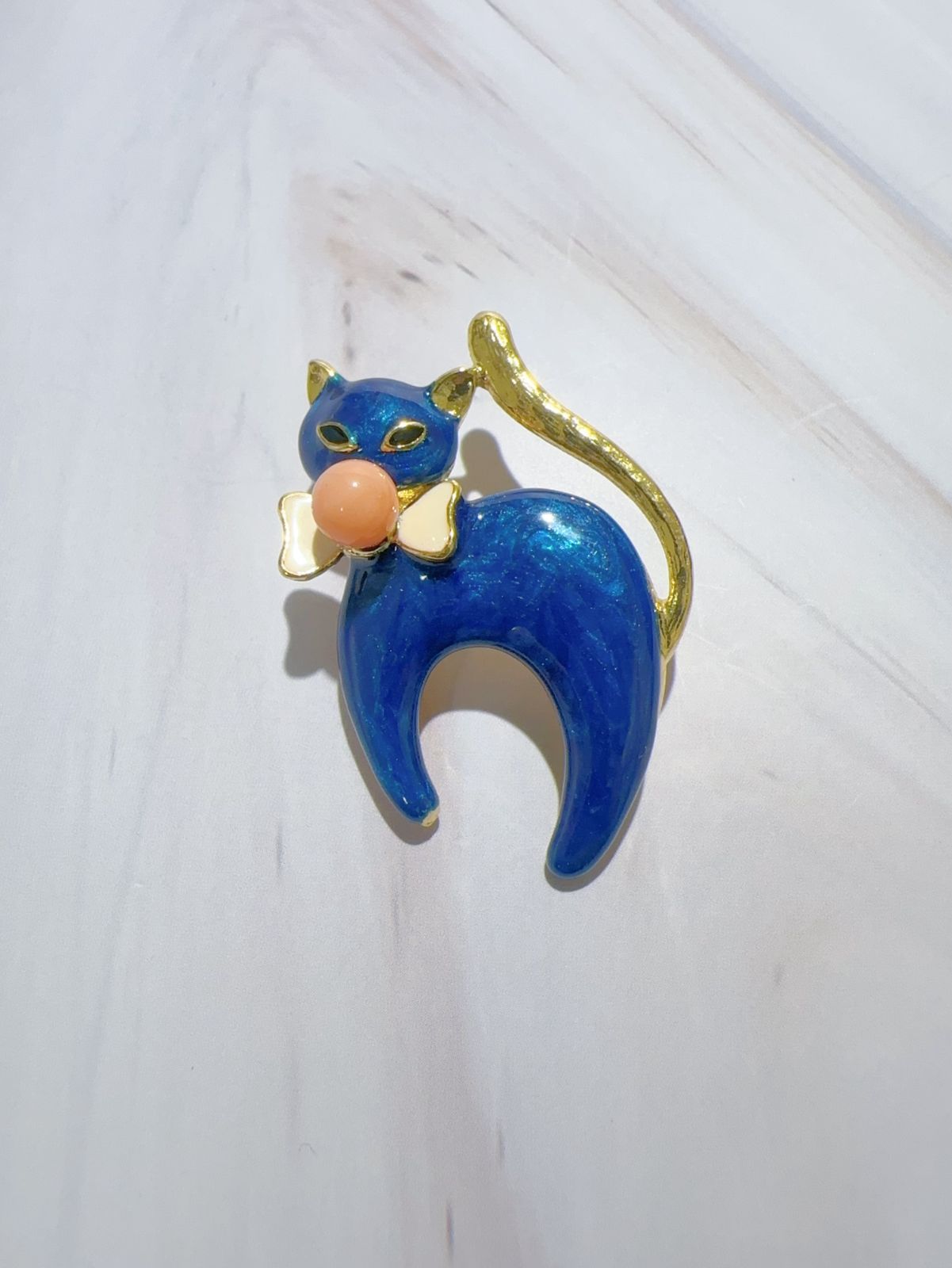 #猫ブローチ #キャットモチーフ #ブルーエナメル #ヴィンテージアクセサリー #レトロファッション #ブローチ #アニマルモチーフ